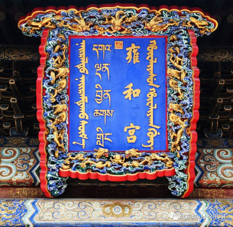 为了实现这一仓促的决定,雍和宫的主要建筑在15天内,由绿色琉璃瓦改为黄色琉璃瓦,以达到至尊规格,乾隆九年,雍和宫正式改为藏传佛教寺庙,而门口的三座大牌楼,也是那会儿建起来的,您注意看中间牌楼上,是乾隆皇帝的亲笔题字