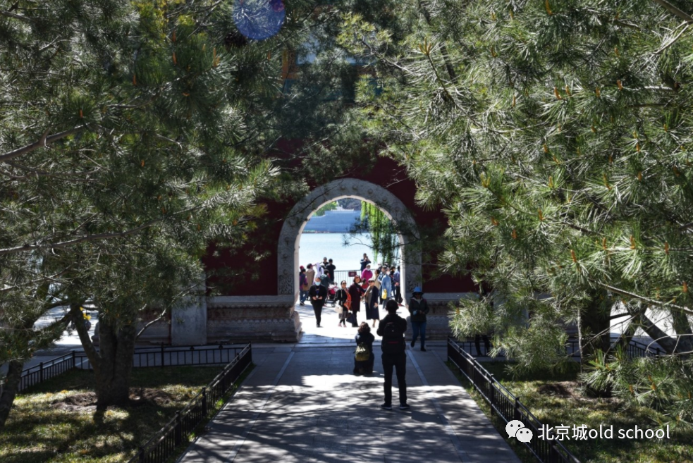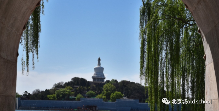 寻找老北京的牌楼,北京人第一个想到的就是北海公园,白塔是北海的标志,那您找到这个镜头里的白塔,是从哪儿拍出来的吗?是在牌楼的北面,中间的山洞,望向琼华岛,这样拍过去的话,山洞会形成一个相框的效果,您得站在这座‘华藏界’牌楼的后面