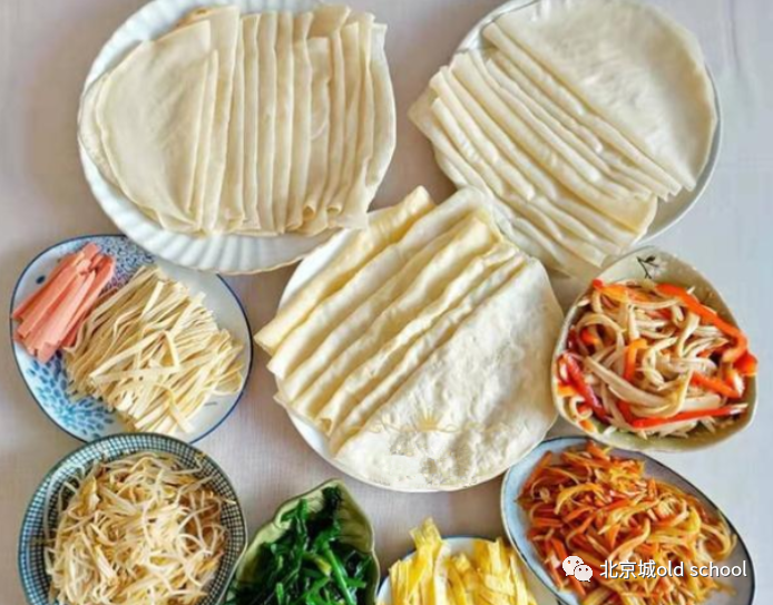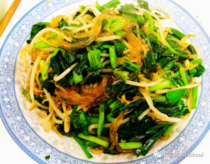 盒子菜送回家,自个儿烙饼,弄碗六必居甜面酱,再来几盘素菜,比方说炒粉丝,炒菠菜,炒白菜丝儿,萝卜丝儿,豆芽儿等等,全家人都围在饭桌儿上开吃,甭提多香了,春饼里卷的花样越多,越讲究