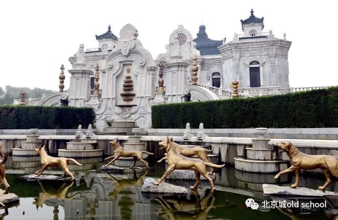 直喷到梅花鹿的身上,这些都在国安第一城中被原景重新了,实际上在圆明园里不止一次喷泉,咱们熟悉的十二兽首是海晏堂前面的喷泉,而大水法的喷泉景观叫‘十犬逐鹿’