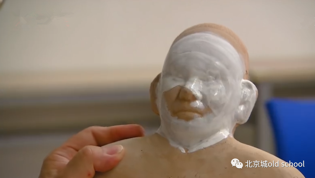 说了这么半天的盔头,您甭忘了这对北京夫妇传统的可是两项非物质文物遗产,除了盔头还有彩塑京剧脸谱呢,杨老爷子说自个儿拜过泥人张儿的传人,学习过泥塑,而从泥人儿都彩塑脸谱,则要拜自个儿童年的特殊经历所赐