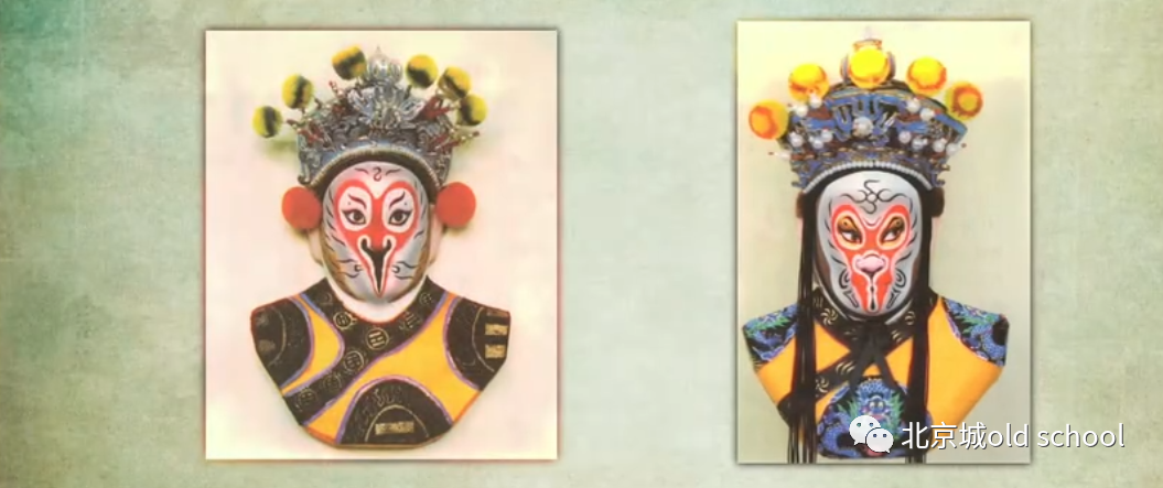 外行看热闹,内行看门道,不同的京剧名角脸型不一样,但为了画出人物的角色性格自然得量脸定做,咱们最熟悉的孙悟空的猴儿脸,居然还有两个截然不同的版本,关键就在中间的这片红上,左边的这个行话叫‘倒置一只桃’右边的这个叫‘倒置一口钟’
