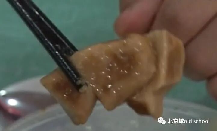 如今北京卖的卤煮火烧,里边的豆泡儿都不是自个儿炸的,全都是那种半成品,因为豆腐里边应该有小眼儿,证明炸得特别充分,没有小眼儿意味着汤汁儿没渗进去,只有充满小眼儿,才能吸饱汤汁儿