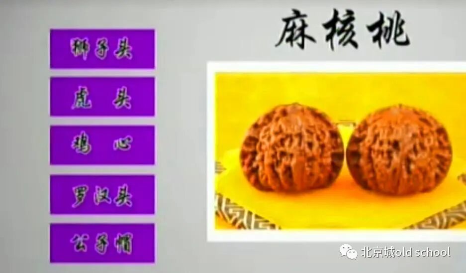 这和咱平常吃的核桃不是一个品种,您看咱们平常吃的核桃是薄皮儿大馅儿,身上的纹理也浅,关键一点它易碎,所以不合适在手里把玩,而麻核桃纹路多变,体型优美,质地坚硬,所以麻核桃能变为北京人的首选,不过要说这麻核桃体型优美,究竟美在什么地方呢