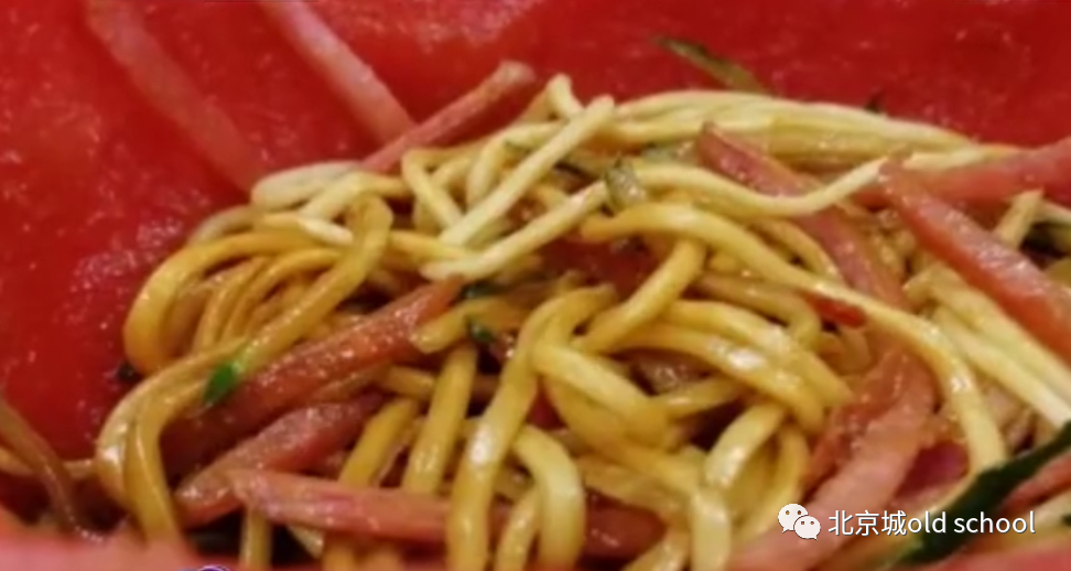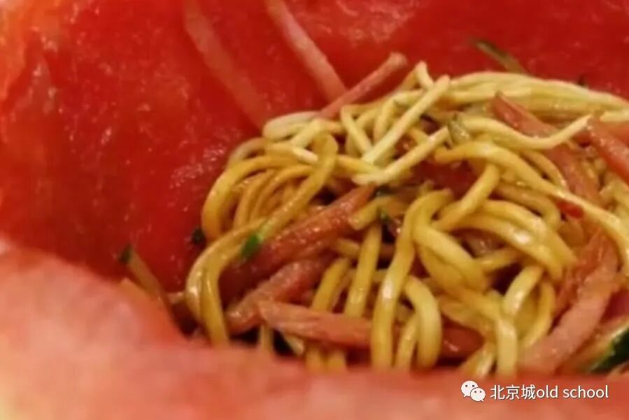 浑身上下,由内而外都透着一股子凉快,透着舒坦,这才是真正的老北京生活,所以吃没吃过一种西瓜皮盛的芝麻酱凉面,是检验一个人是不是地道老北京的秘方儿,之所以这样吃,是因为芝麻酱吃起来糊嘴,但要把芝麻酱凉面搁进西瓜皮儿里就不一样了,西瓜汁儿跟芝麻酱可以起到中和的作用,您吃起来一不糊嘴,二还有点儿甜头,嘿!咂摸起来特别有味儿