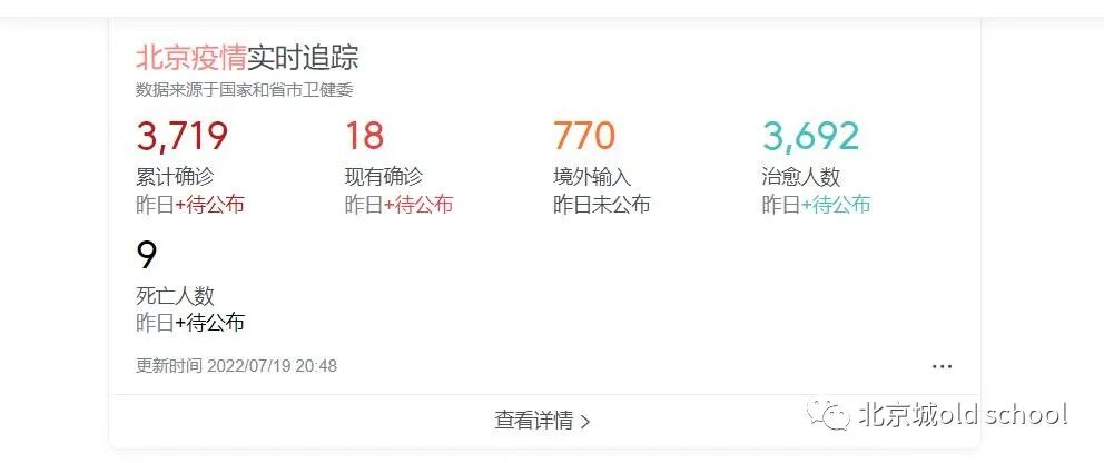 都说六月底,七月初,北京疫情就会落下帷幕,但在7月12日,京东防控落实不到位,被立案查处,上班儿不戴口罩,被发现后还不以为然,拒不承认,每次都是因为他们,连累所有人跟着一起倒霉,打开疫情数据,与前几次一样,看了但好像又没看,数字并没发生太大的变化,累计确诊3719,境外输入770