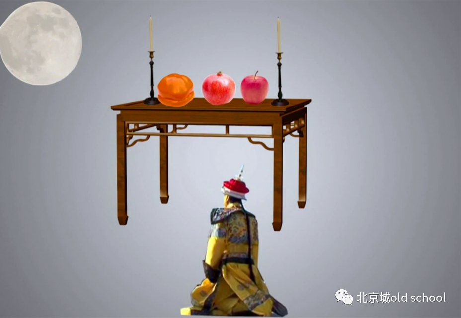 再有一个是中秋节,每次中秋节系列活动的第一个环节,皇帝就要供月,就是咱们俗称的祭月,把各种京味儿美食,全都摆着桌儿上,除了月饼这个主角儿外,大部分都是带有吉祥寓意的水果,比方说象征着平安的苹果,代表着多子多孙的石榴,事事如意的柿子等等。