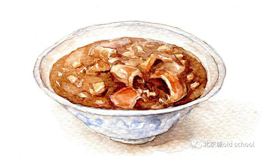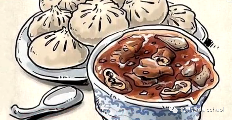 炒肝儿留给北京人的不仅仅是一道吃食,还衍生出了北京人为人处世的流行语,所以说这炒肝儿京味十足最契合不过了,过去老北京人吃炒肝儿跟现在一样,都得就着包子吃,有炒肝儿摊儿的地方必然就有包子的身影