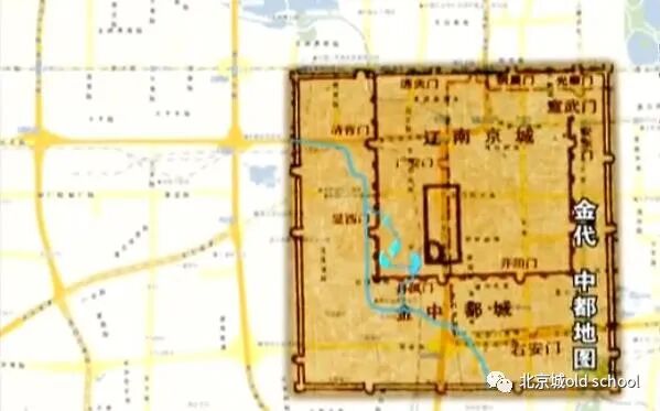 自古人们都是择水而栖,明清的内外三海咱们熟,而金中都的水系在哪呢,从地图上不难看出,金中都城内的水源上游在城墙西北角的位置上,而根据都城位置的对比,金中都的西北角大概相当于现在军事博物馆的位置