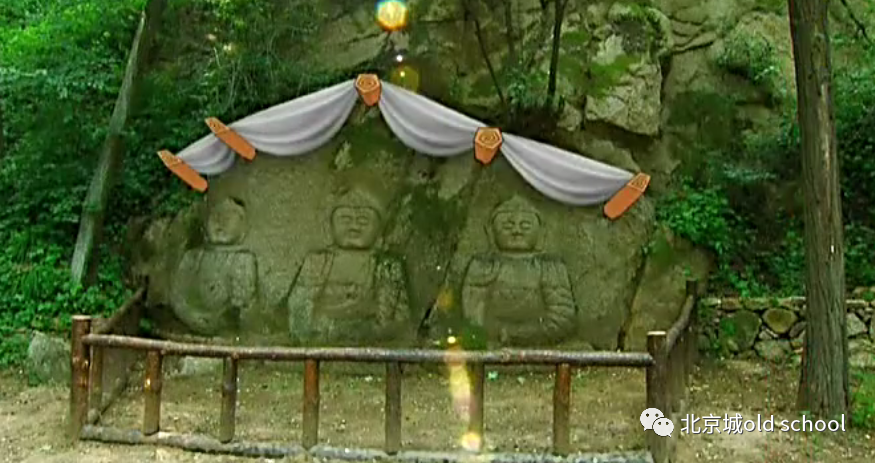 村儿东头的山50多米高的山崖上,一共有16龛18尊造像,雕的是观音菩萨,阿弥陀佛,释迦摩尼和罗汉等等,是咱北京难得一见的大规模的隐秘摩崖造像群,那为什么这么多的石刻佛像会隐匿在山谷当中,藏在山腰拐角处的一行小字儿,给我们提供了破解谜题的线索