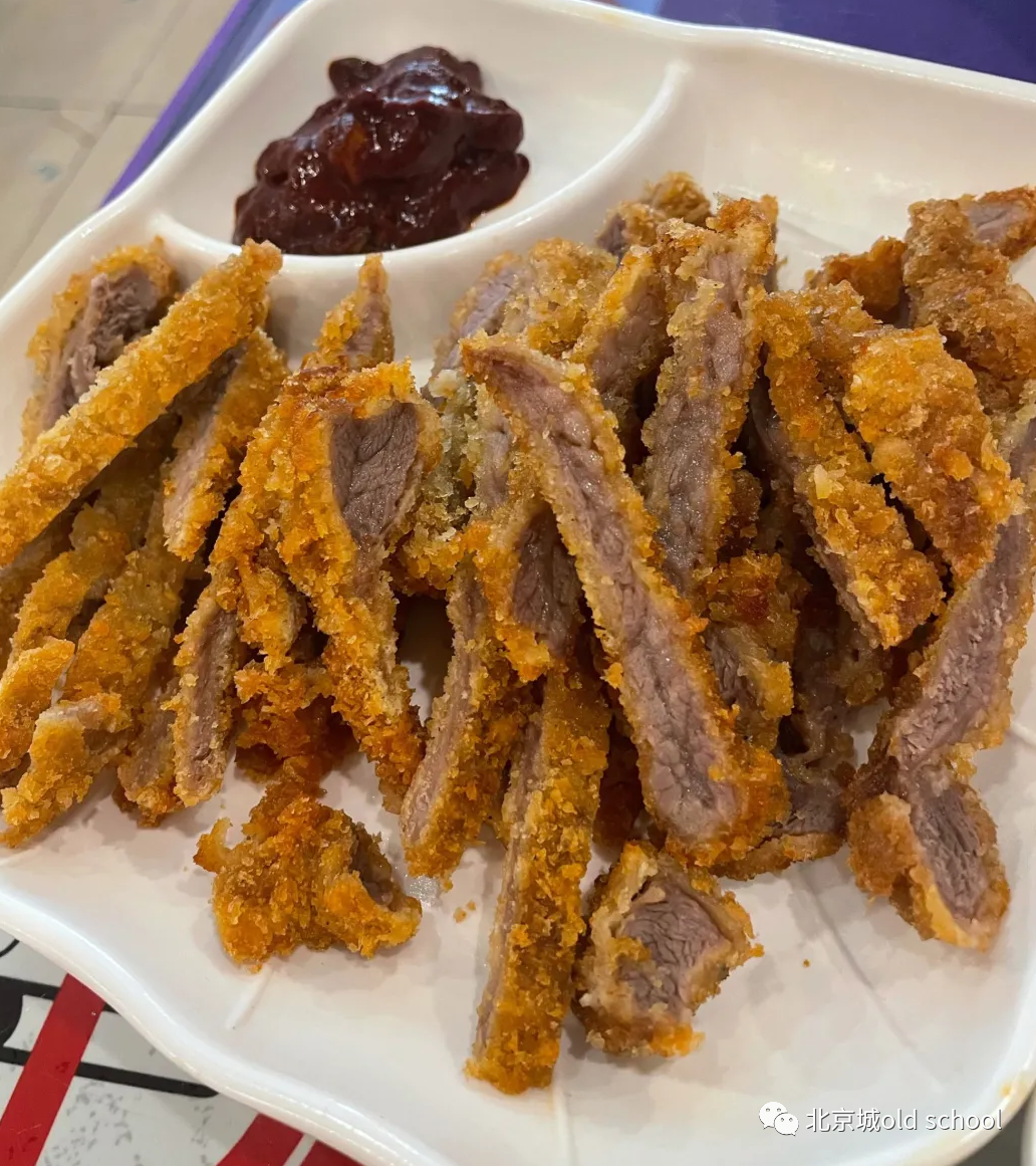 切好的牛肉加入调味品进行腌制,接下来的做法更类似于西餐的工艺,把腌好的牛肉裹上面包屑,裹好以后就可以下锅炸了,而面包屑的作用一方面可以避免牛肉在炸制过程中因为受热的不同导致里外成熟度的差异,而另一方面面包屑也可以稀释更多的油脂