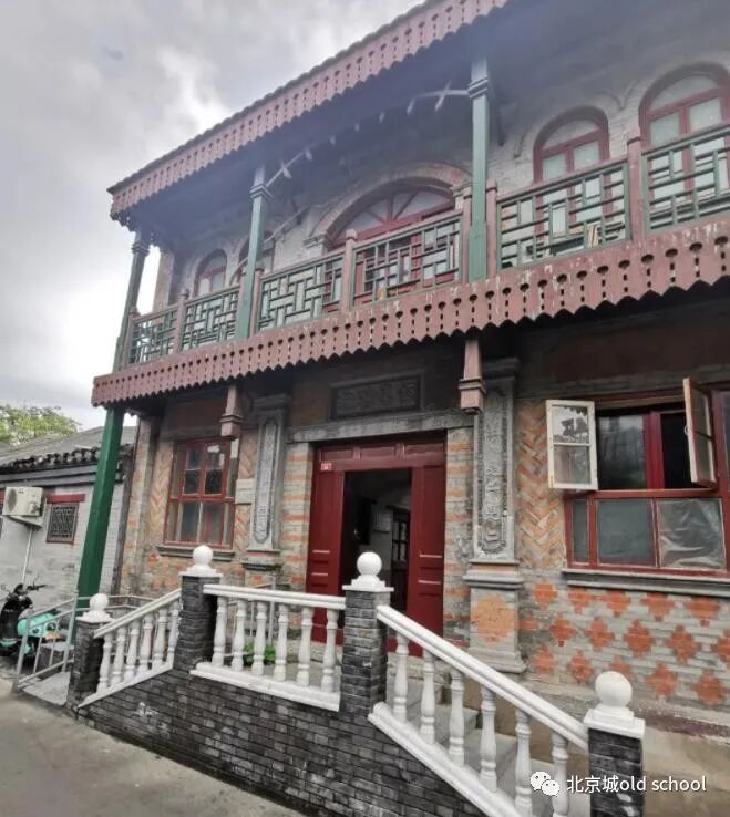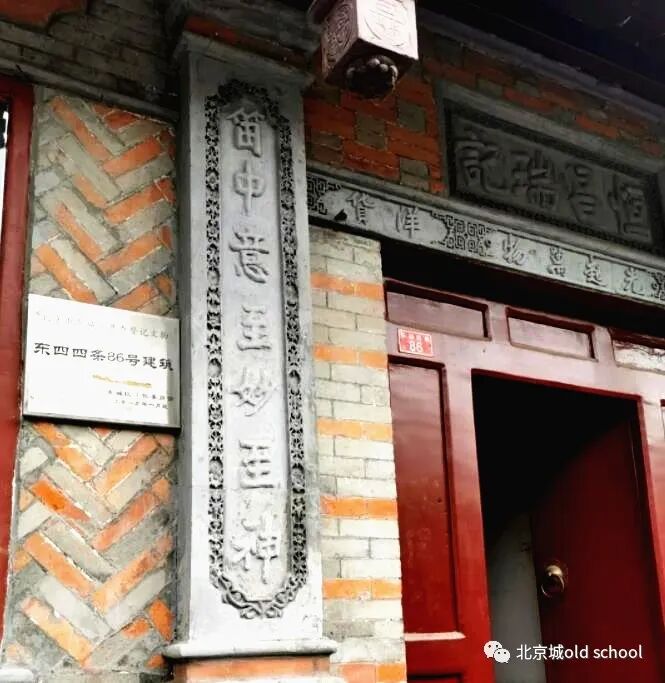 在东四四条胡同口,还有一家北平摩登宝藏地,这是位于东四四条西口的二层小楼,红色的老砖墙让它在周围灰色的四合院中独树一帜,整个建筑都有镂花做装饰,门额上刻着“恒昌瑞记”还有“光起万物”洋货的字样