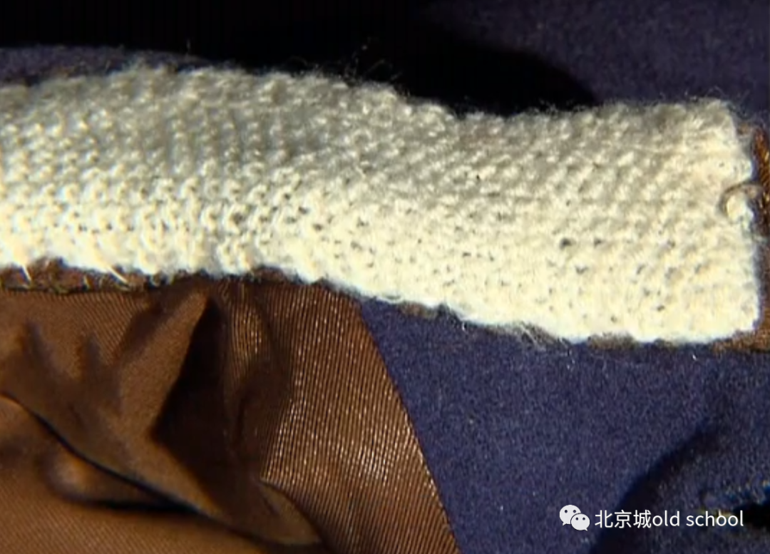 过去老北京的军大衣也有真假的区别,真正像样儿的军大衣布料厚实,关键是电木纽扣上还有五角星的花纹,而地方 上的找不到真的军大衣,只能穿一些布料劣质的仿版,纽扣儿也只能是灰不溜秋的,而更关键的一点就在这大衣怀里