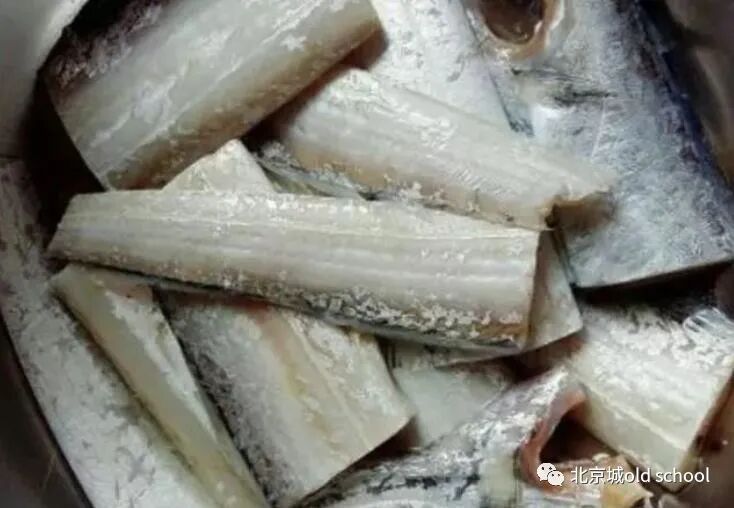 先搁钢种锅里拿清水泡,图的是把带鱼里的盐分给它泡没了,吃的时候不至于齁儿的慌,最夸张的是有一家儿吃咸带鱼,恨不得全胡同的人都能闻着,它跟老北京臭豆腐的味儿不相上下,闻着臭,吃着香,越吃越上头