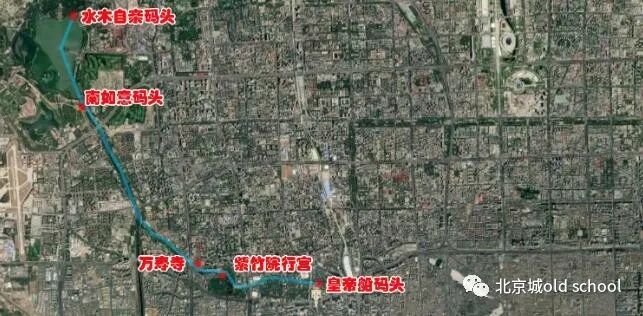 因此慈禧沿着长河一路行船过来,万寿寺就成了必去之地,从紫御湾换船到万寿寺,花15分钟,出了万寿寺区域,一路朝着西北方向全速前进,慢慢的向慈禧水道的终点站颐和园靠近,而慈禧当年什么都看不着