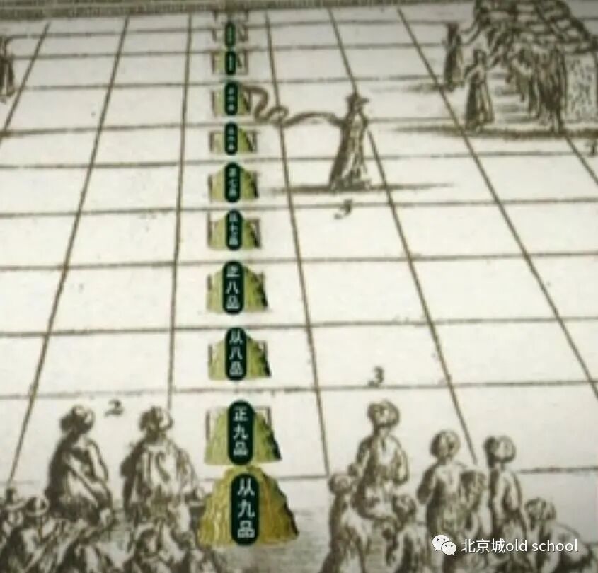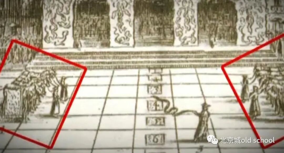 看来在外国人眼里,这些寓意复杂的吻兽,不过是一群可爱的宠物而已,您再往下看,紫禁城的地面上,居然写上了数字,实际上,这些荷兰使团被告知,要跪在第十一方砖之后的地方,用来标注位置的,就是这种大约半米的品级山,但是到了这位荷兰画家这儿