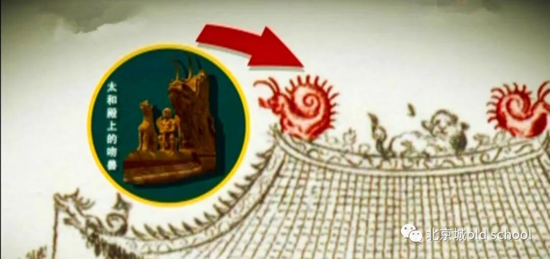您注意看,大象仪仗队的前边,有个人挥着鞭子,不是训象用的,老北京叫‘静鞭’抽鞭子就相当于大声喊‘肃静’这样的细节恐怕只有亲眼所见才能画得出来,但它有对有错,就在太和殿上的吻兽竟然变成了蜗牛和小狗的形象