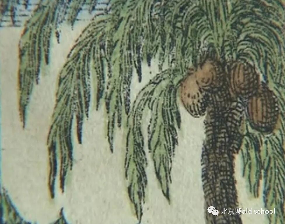 照片上的人正是顺治皇帝和他的两位皇后,血统纯正的满族人,竟然被画成了高鼻梁儿,深眼窝,龙袍凤袍也被画成了改良式的唐装,就是这么一张严重失实的画像,竟然还刊登在了1667年的外国报刊上,这还不算新鲜的,您再看这张,嫔妃的后花园里,竟然长出了椰子树