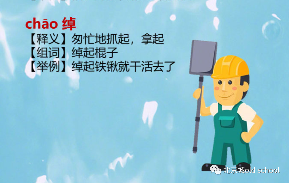 第五个字儿是绰,原意来源于四大名著《水浒传》“绰枪上马”在很多京味儿电视剧中经常能听到字儿,就拿《情满四合院》中的傻柱跟许大茂儿举例,傻柱绰起酒瓶儿就向许大茂招呼了过去