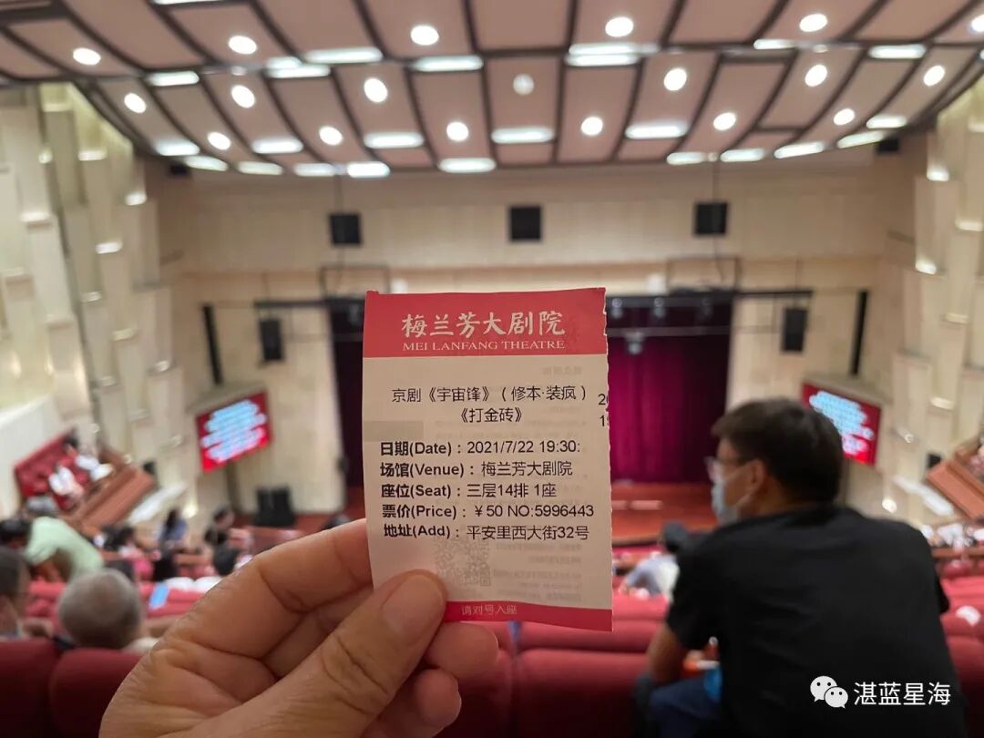 两天后,我看有京剧《宇宙锋》《打金砖》演出,票价根据座位50~500元不等。我定了一张最便宜的,在三楼,打折后47.5元。