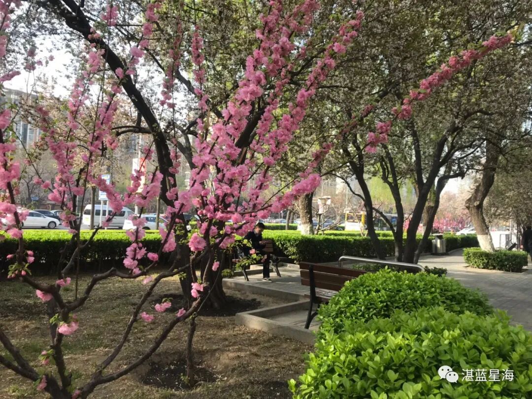 一排排的北美海棠、一列列的玉兰、一簇簇的榆叶梅、一枝枝的木瓜、一棵棵的紫丁香、一团团的迎春花,还有满坪的绿芽和盛开的盆栽……真是三春万卉皆含笑,繁花一树压枝低。