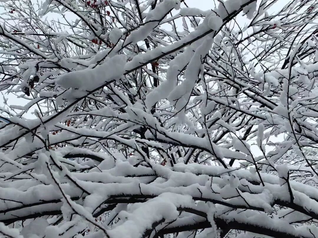 清晨,大地银装素裹,雪中的树枝挂满了闪亮的冰晶,仿佛是钻石般璀璨夺目,有的像细长的针,有的像小小的花朵,有的像拔出的剑;整个地面盖上了洁白无暇的被子,平整而温和。小区的车辆齐刷刷披上了上好的白色“披风”,各式各样静静地停在那里,大概是在享受休息的惬意……