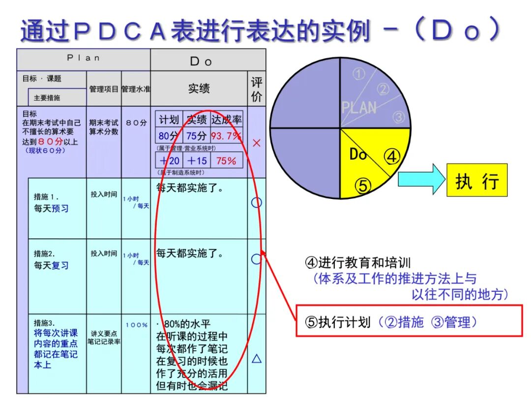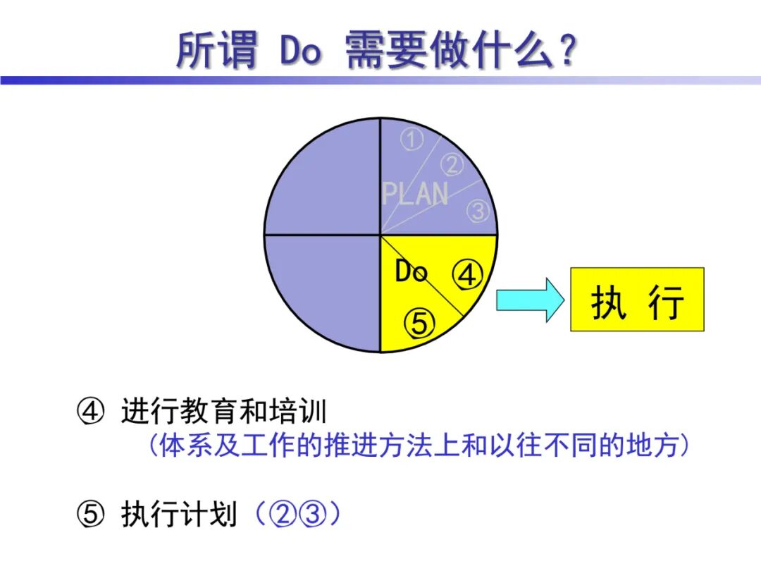 2、D (Do) 执行,根据已知的信息,设计具体的方法、方案和计划布局;再根据设计和布局,进行具体运作,实现计划中的内容。