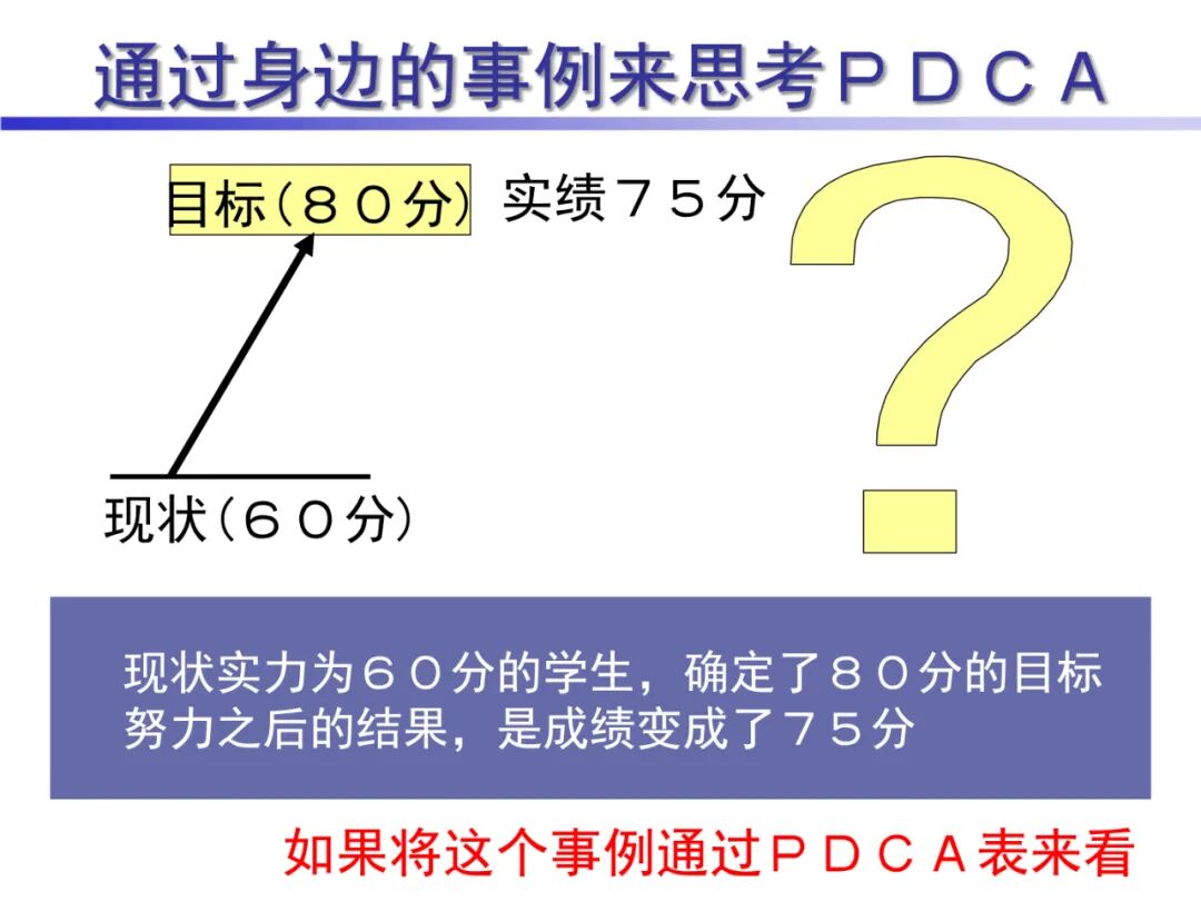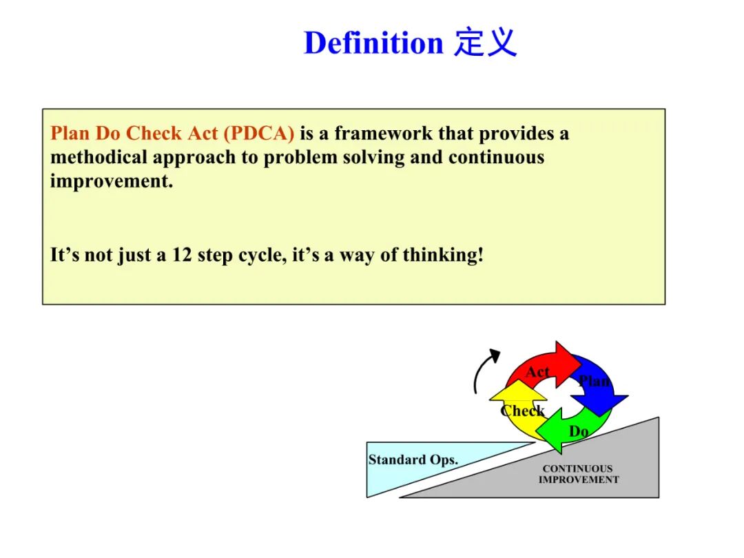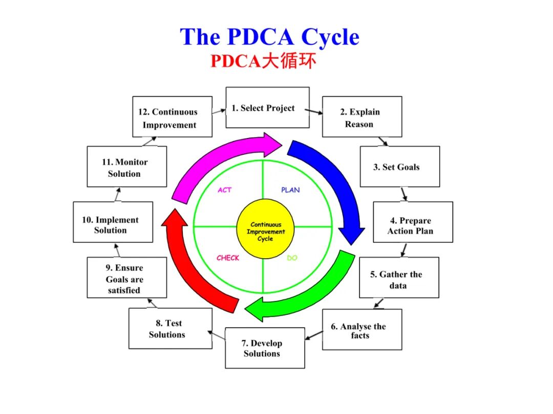 PDCA,即是计划(Plan)、实施(Do)、检查(Check)、行动(Action)的首字母组合。无论哪一项工作都离不开PDCA的循环,每一项工作都需要经过计划、执行计划、检查计划、对计划进行调整并不断改善这样四个阶段。