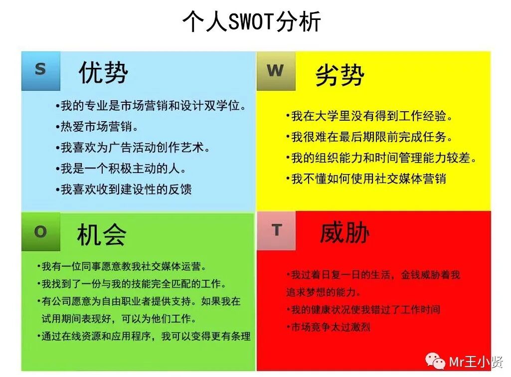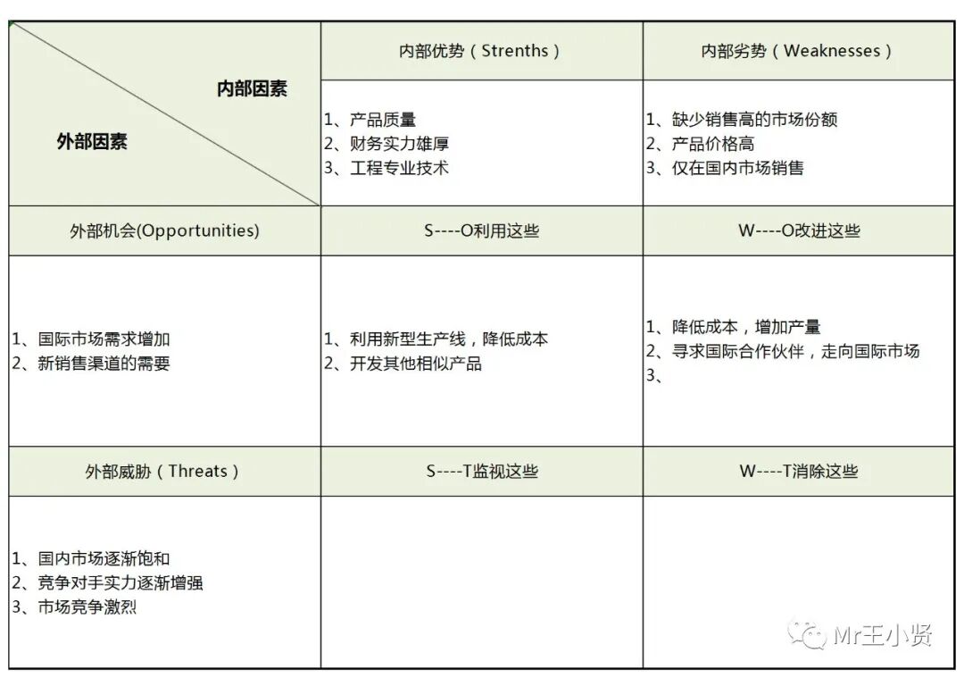项目管理: 在项目启动前后,进行SWOT分析,了解项目团队的能力、项目的潜在风险和市场机会。