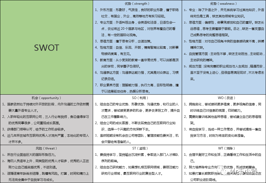 个人职业发展: 对个人的技能、经验进行内部评估,同时关注外部行业趋势,找到职业发展的机会和挑战。