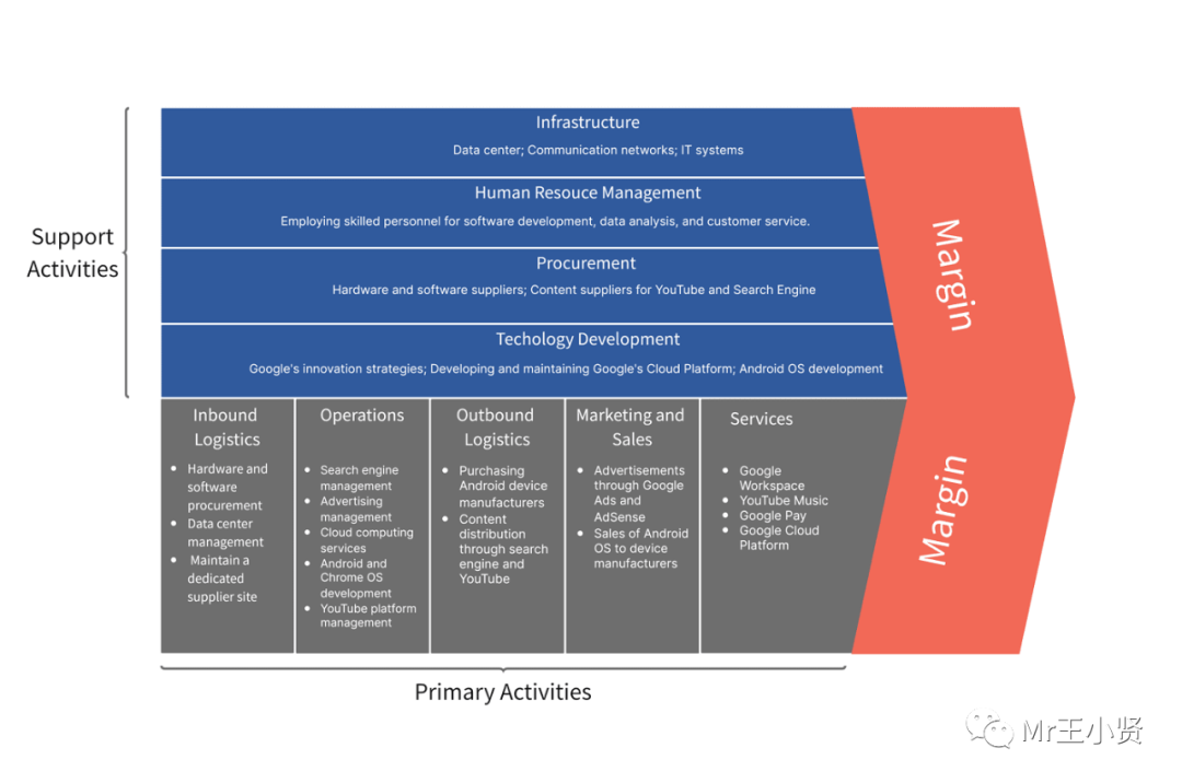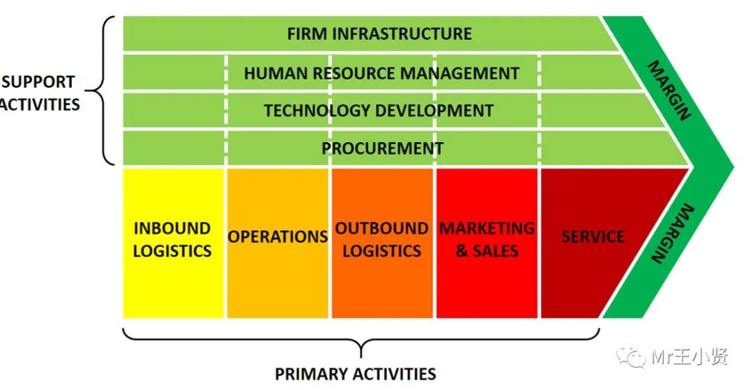 这需要通过【价值链分析】,拉升视角,从公司整体的框架下,来纵览一下公司如何创造价值、如何创造更大的价值,在不同岗位上的我们,又该如何作为其中一份子积极有效的参与创造价值。