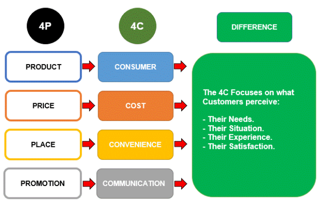 顾客(Consumer): 强调满足顾客需求和期望,将顾客置于营销决策的中心。