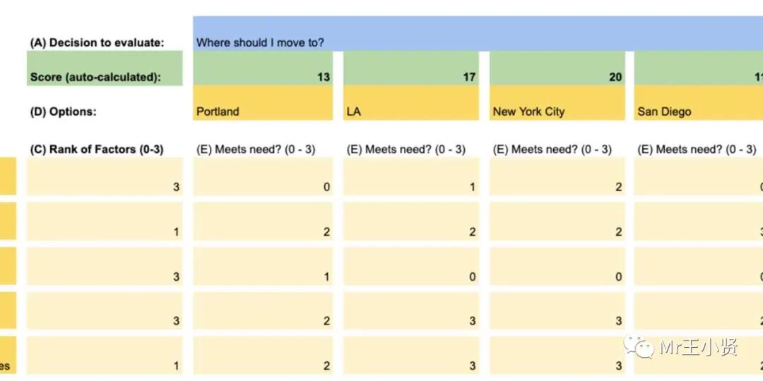 希望通过上述决策矩阵思考模型的分享,大家在进行决策判断的时候,除了在脑中使用该思维模型过一遍之外,针对复杂决策,能够使用矩阵模型,列出对应方案和评估维度,进行分析后再行决策,以保证决策的科学、合理性,降低风险。
