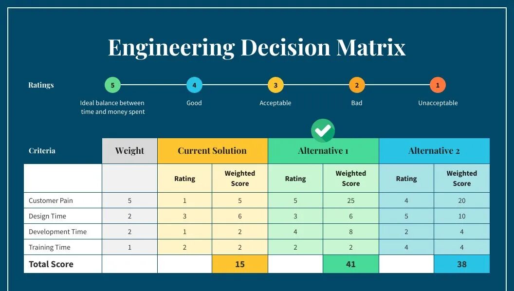辅助决策的灵活性:决策矩阵虽然提供了一种系统性的决策方法,但在实际应用中需要保持一定的灵活性,结合实际情况灵活调整权重和标准。也可以根据实际的需要,调整评分的维度;根据实际需求和目标,参考合适的评分组合,并非仅参考总评估分数。
