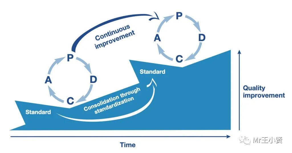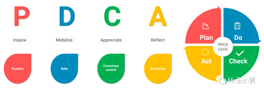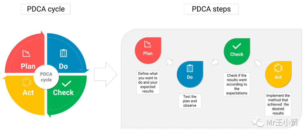 PDCA循环,又称为循环改进或循环学习,是由质量管理大师Edward Deming引入的一种管理方法,故也称作“戴明环”,最早应用于质量管理实践中。它包含四个关键步骤: