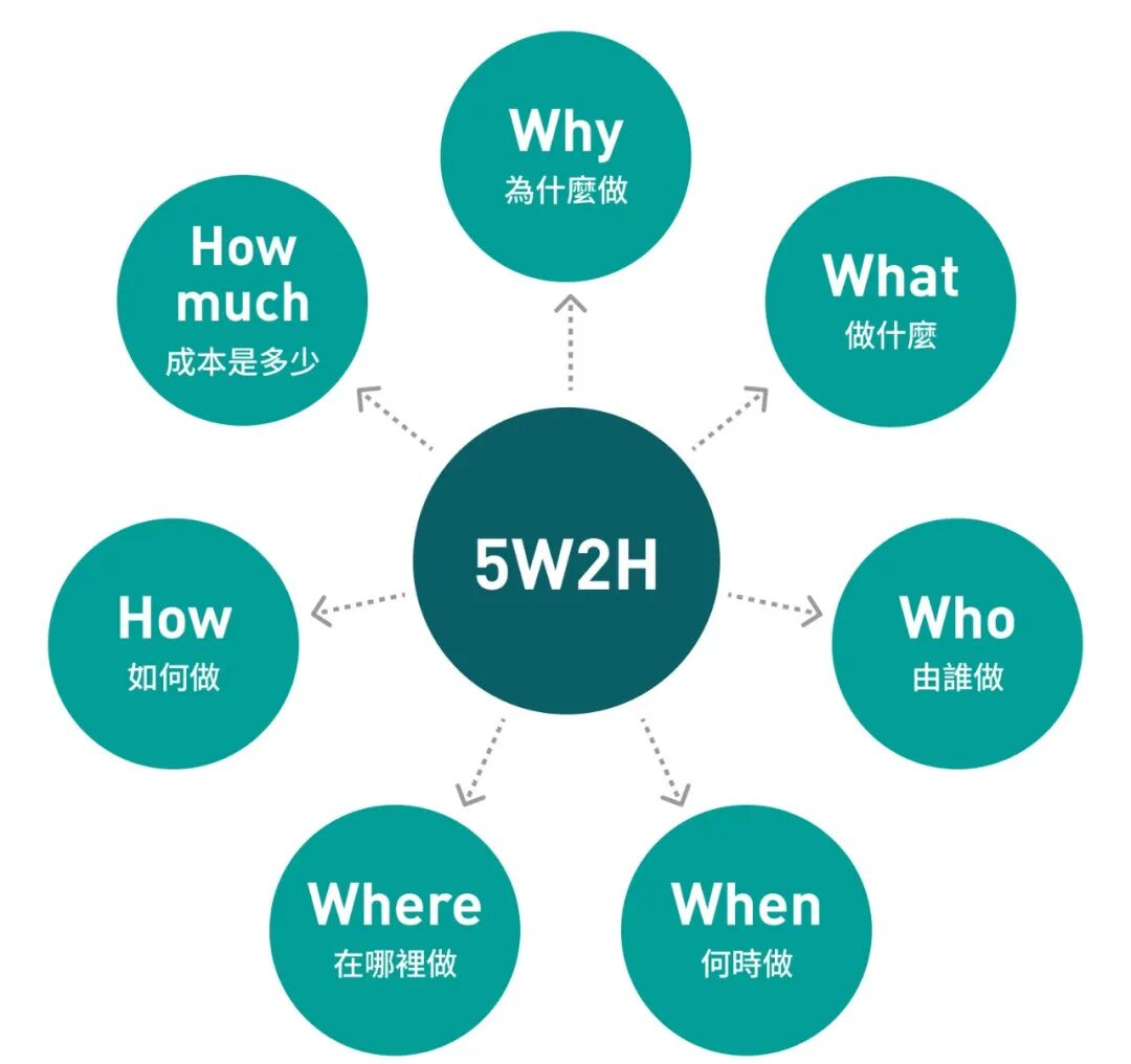 特别是对于刚刚进入管理岗位的同学,5W2H分析法,可以帮助你更全面、深入的分析问题,拆解任务并组织团队人员更有效的落实。