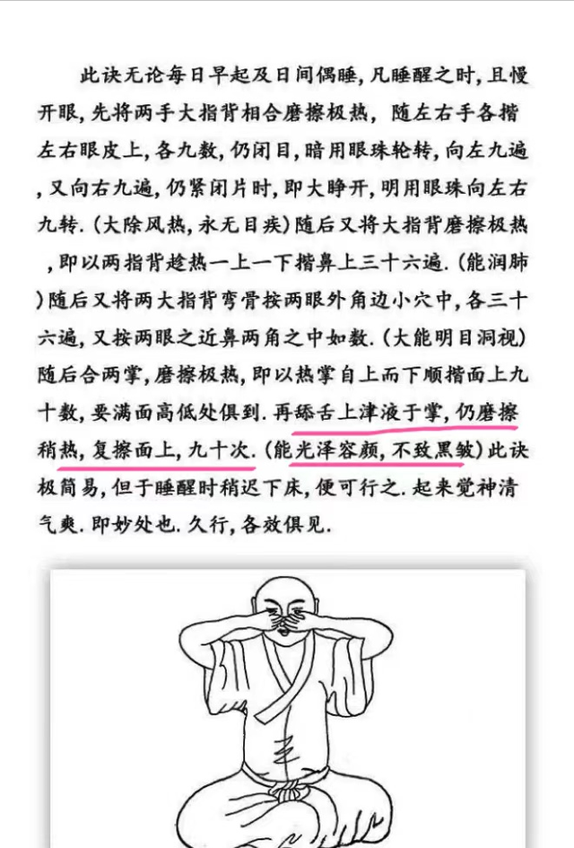 这个方法称之为“揩面”,我们可以理解为按摩脸部,但是因为脸部皮肤比较容易松弛,所以用按压的方法更好。