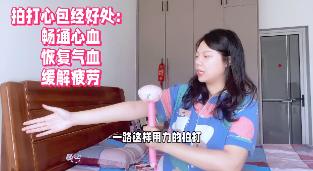 拿出我们的艾灸拍打锤,它闻起来呢是一种淡淡的艾草的味道,找到这条心包经一路度,这样用力的拍打,一直到我们指尖的部分啊,而且没拍一会儿,你就觉得整个手臂都开始,发麻发热。