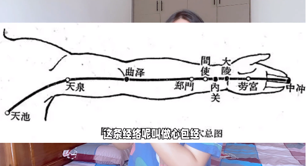 第一个动作呢,从我们从我们肩膀这里哈,沿着手肘一路走到我我们中指指尖的这一条经,这条经络呢叫做心包经。其实很多女性长斑啊,都是心情不畅,气血不畅导致的,所以呢我们要多去拍打这条心包经。