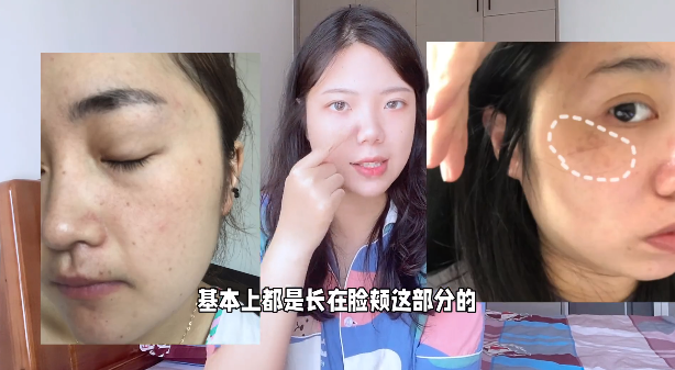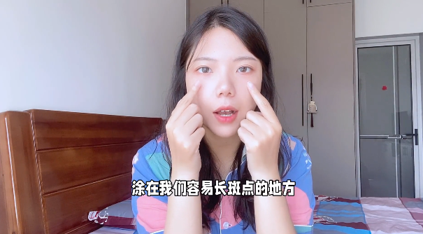 我自己用的呢,是这个壬二酸和水杨酸的组合,之前在看呃微博的时候呢,发现人民网发表了这样一篇微博啊,用15%浓度的人二酸,能够很好的,淡化脸上的黄斑,黄褐斑,平时白天我们洗完脸哈,大致就涂这么多点,涂在我们容易长斑点的地方,像是脸颊呀,还有就是眼角旁边这里哈。