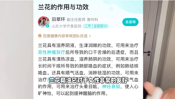 这个四白呢,可以说是我们整个面部,畅通经络的一个非常重要的开关了,它上面一点点呢就是我们的黑眼圈和眼袋,下面呢就是法令纹,所以我们平时在涂护肤品的时候啊,一定要把这个点给揉开,就是洗完脸之后啊,先滴一点这个精油在脸上。我自己用的呢是这个兰花精油,它对于女性非常的友好,这已经是不知道多少瓶了,反正一直都在用。