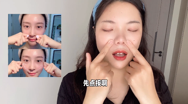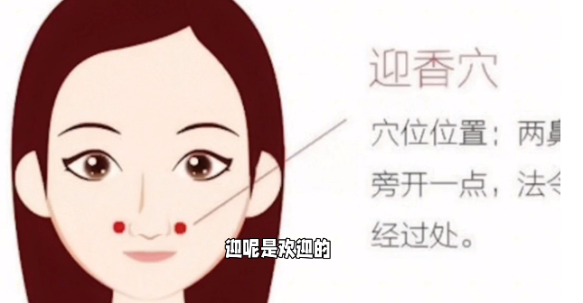 像我刚刚涂了那个面霜之后啊,就可以去多按一按这个迎香,先点按啊,稍微有一点点酸痛没有关系,如果说你不小心感冒了,嗯然后这段时间有点鼻子堵塞的话,还可以上下的这样去,搓一搓这个影响这样啊,对于缓解鼻子堵呀,或者有鼻涕也有很不错的效果,好了就这两个非常管用的美容点,平时大家呢,也可以再涂了美白面霜,或者是其它的你用的比较顺手的,带有滋润效果的护肤品之后啊,都可以去揉一揉按一按。