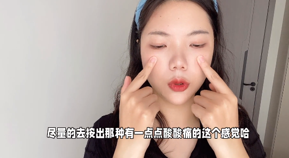 揉在脸上,找到我们刚刚说的四白的这个地方,大致就是这里啊,去按摩,尽量的去按出那种有一点点酸痛的这个感觉哈,这个点呢尤其是针对那种,眼袋比较多的,或者说整个面部比较浮肿的,没有什么气色的啊,尽量要多去按一按这个色,四白在我们的小,在我们小时候学的眼保健操里面有一节啊,其实就是按摩这个四白穴。