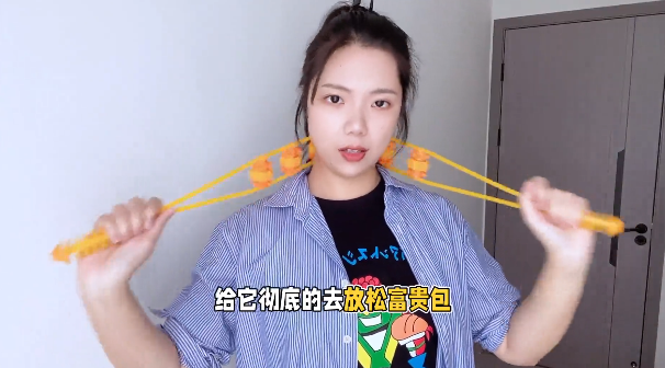 用法很简单直接把它套在脖子后面就是,特别就是富贵包啊,凸出来这个地方,这样左右的拉,给它彻底的去,放松富贵包,这个动作哈,不管你有没有富贵包,都可以这样做,尤其是那种经常坐办公室的,这种低头族,看手机看电脑比较多的哈。