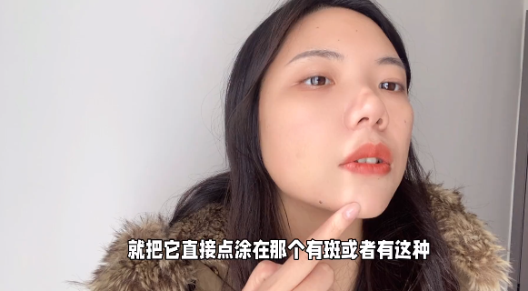 但是它不是护肤品,到底是应该先护肤还是先涂它呢,就我自己的个人经验而言啊,我其实是把它直接当做护肤品用的,我之前的脸颊这里就长了一颗小黄点点,就是平时看上去不起眼,但是只要照镜子的时候,我就会不由自主的看向这个黄点点。