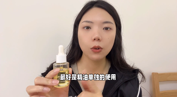 首先要明确精油啊,最好是晚上用,如果说早上直接涂一层精油之后,你再化妆的话,很有可能会闷痘,最好是精油单独的使用,以及用来按摩,我觉得就可以了,我自己使用的话呢,就是先用洗面奶洗干净脸,先喷一层那个爽肤水,让皮肤处在一个不那么干燥的状态,之后呢就可以单独的用精油了。