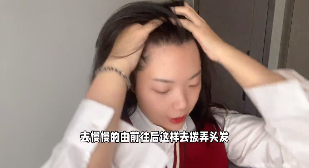 干梳头的方法呢,大致就是我用我们的,十个手指的指腹,去慢慢的由前往后这样去拨弄头发,轻轻的由前往后梳,没有特别的规律啊,就是直接从前面发际线,一直入梳到后脑勺就可以了,这是干梳头的方法。