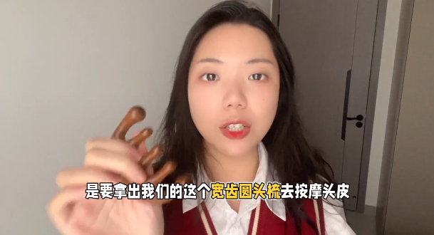 干梳头的方法呢,古已有之,大体呢就是用到我们指腹的力量去摩擦,起热,刺激我们的头皮毛囊,刚开始梳的时候可能你会觉得有一些油腻啊,但是久而久之呢,它是真的对于,畅通血液循环是很有帮助的,梳头方法呢,是要拿出我们的这个宽齿圆头梳去按摩头皮。