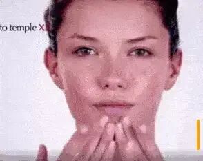 ②中庭皮肤以鼻尖为中心,沿着苹果肌向太阳穴涂抹方式也是向内和向上;