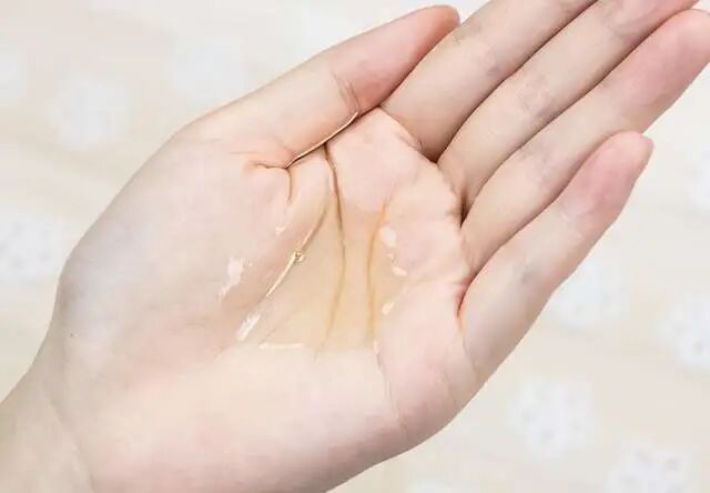 把面霜放在手心,再加入3~4滴护肤油(护肤油的成分应该尽量简单),然后放在手心揉搓,搓到有一点温度之后,可以看到面霜和精油都混合在一起了,这个时候再涂抹上脸就特别好涂抹了。